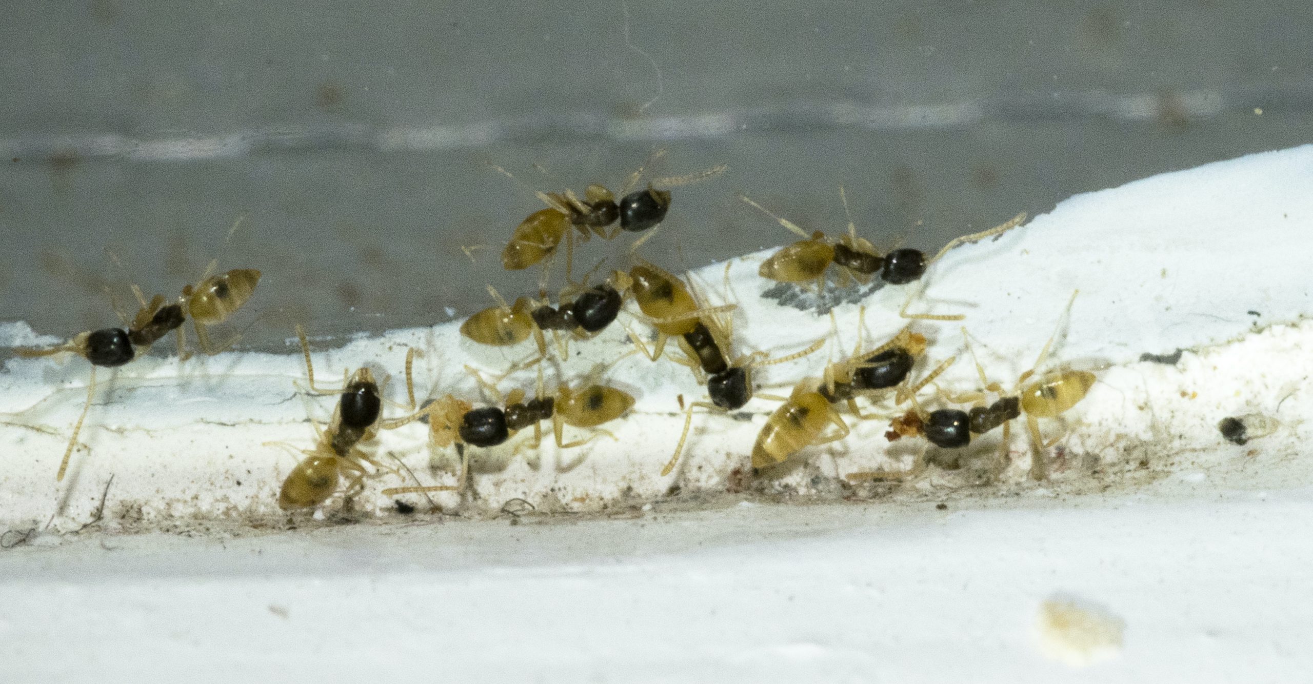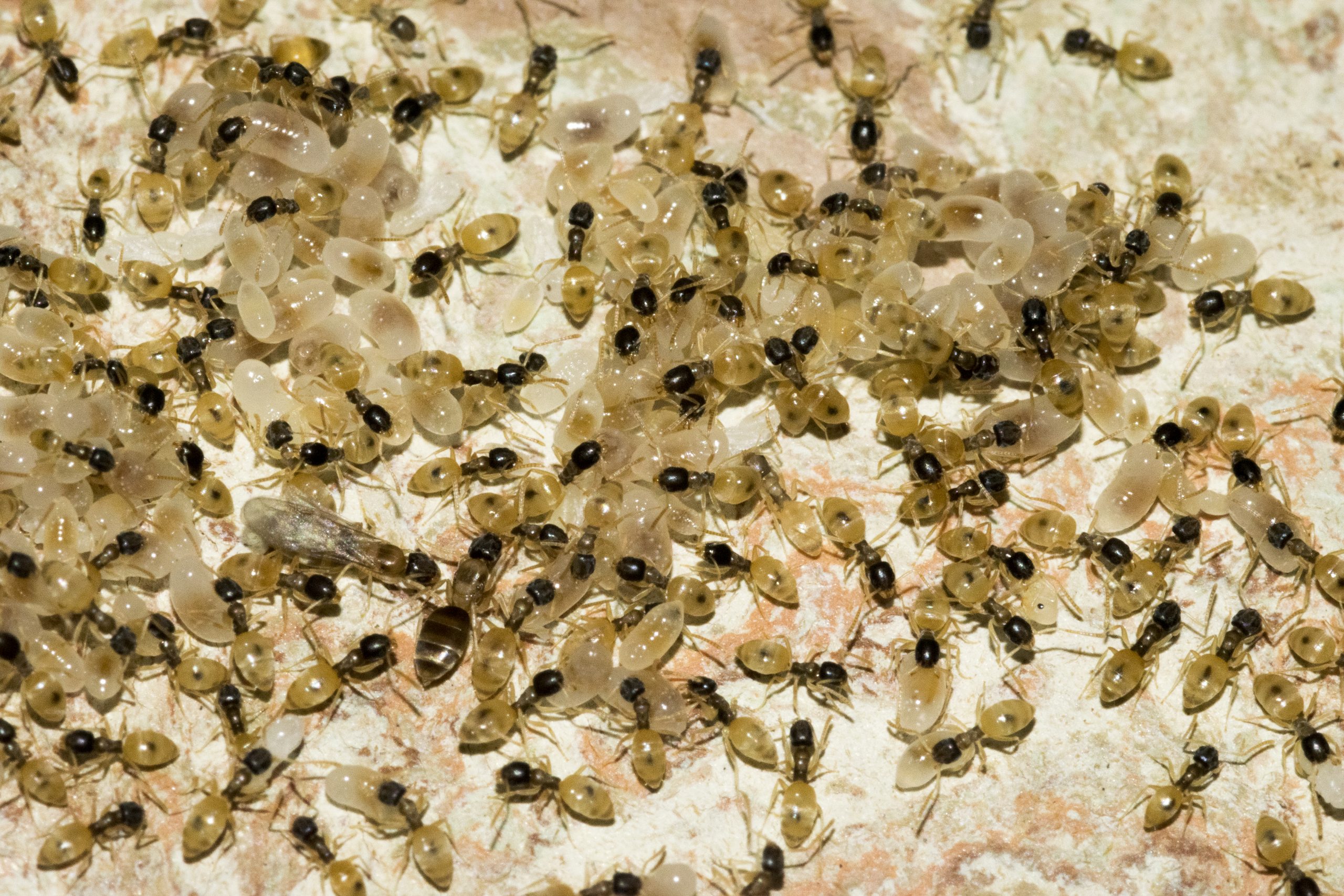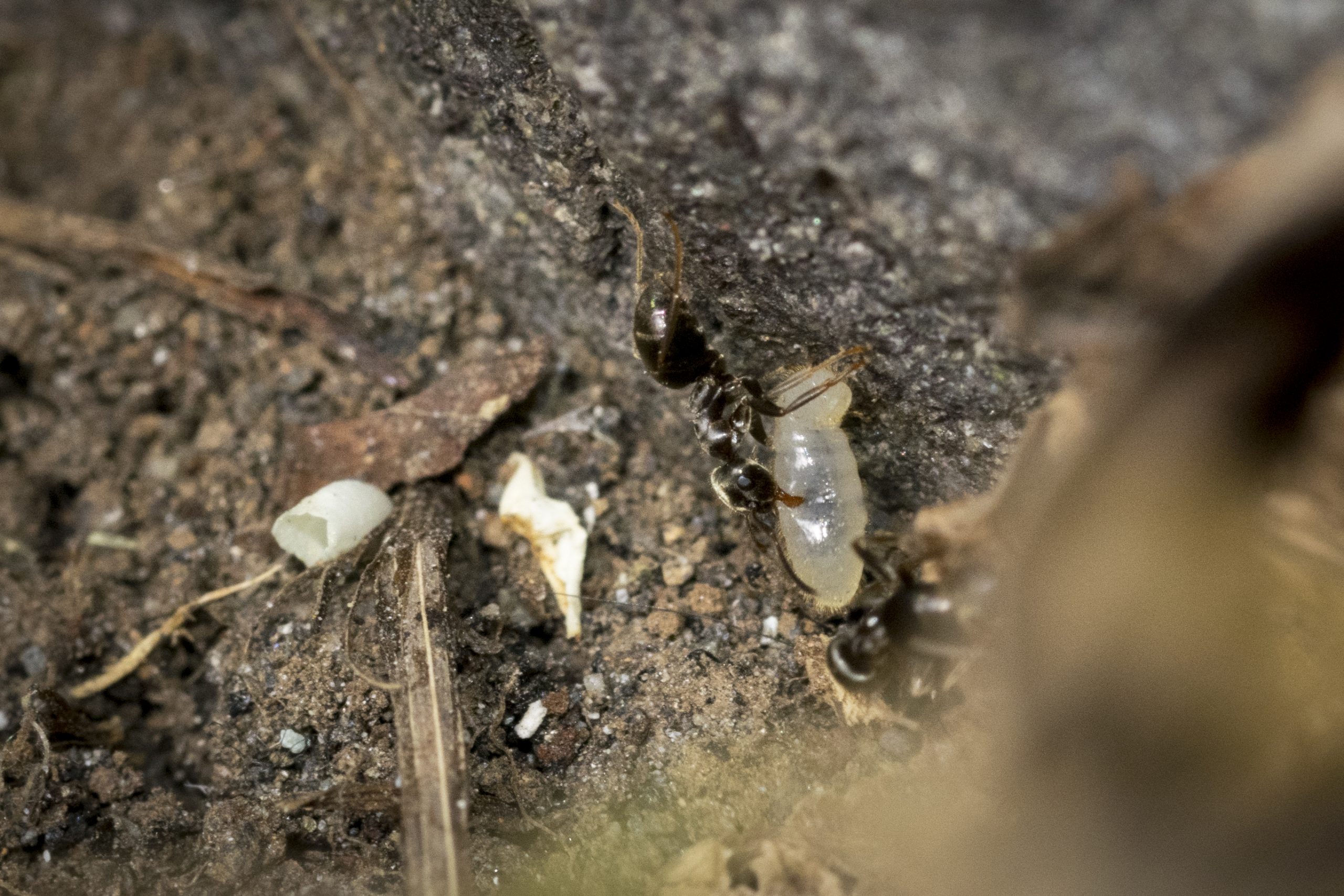 Pictures Images by Marco Mancini Images by Marco Mancini A ghost ant nest. Images by Marco Mancini Ants carrying a larva amongst other things. Images by Marco Mancini Black garden ants gathering food