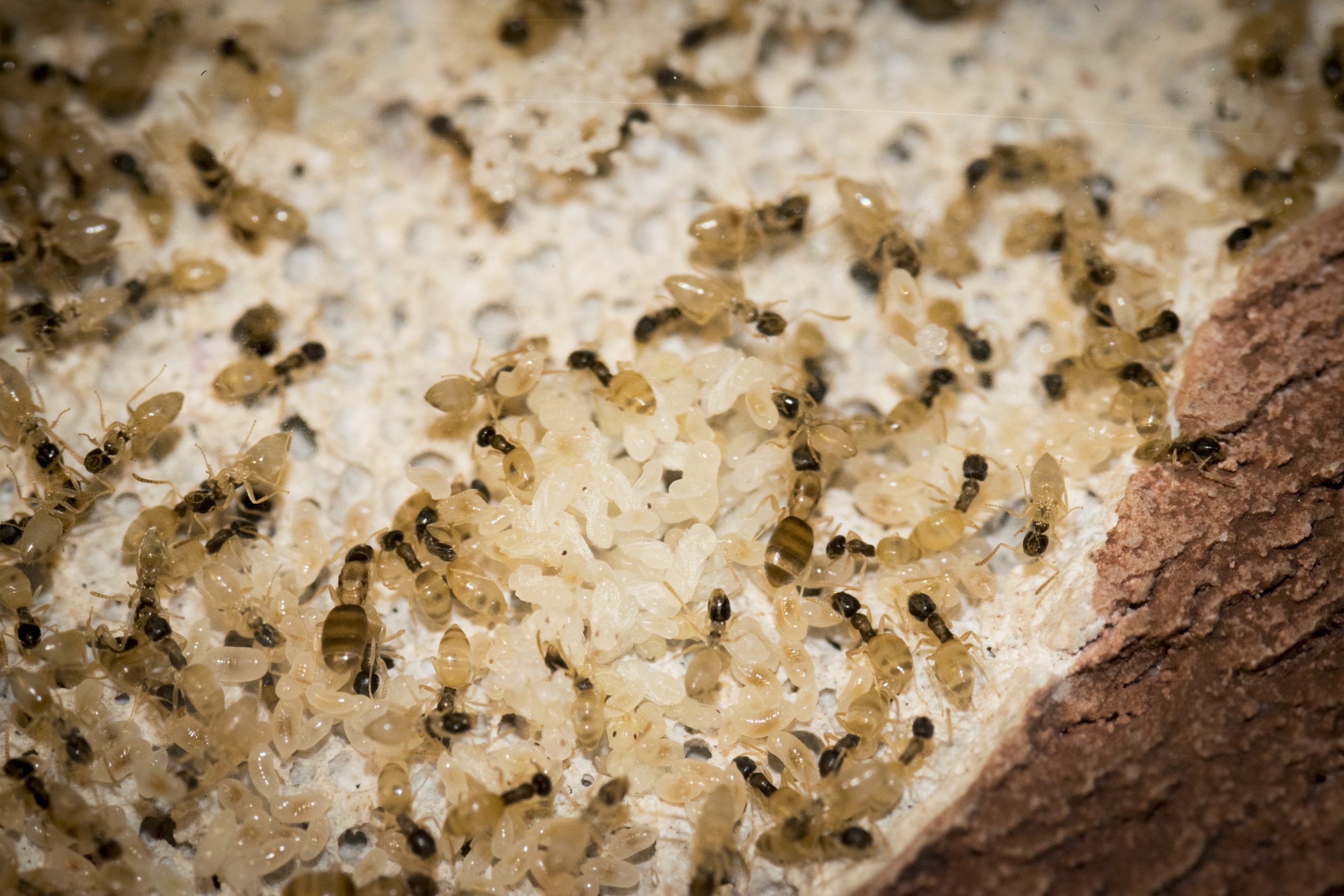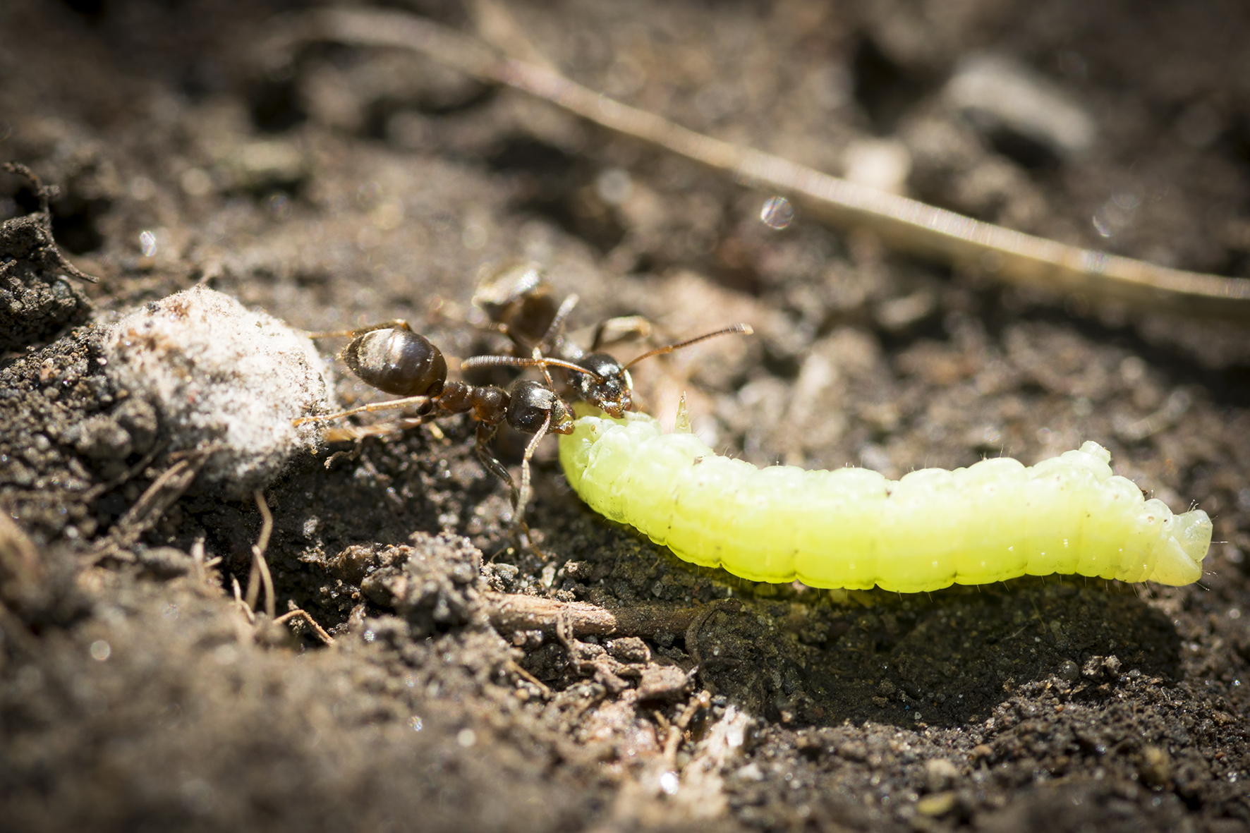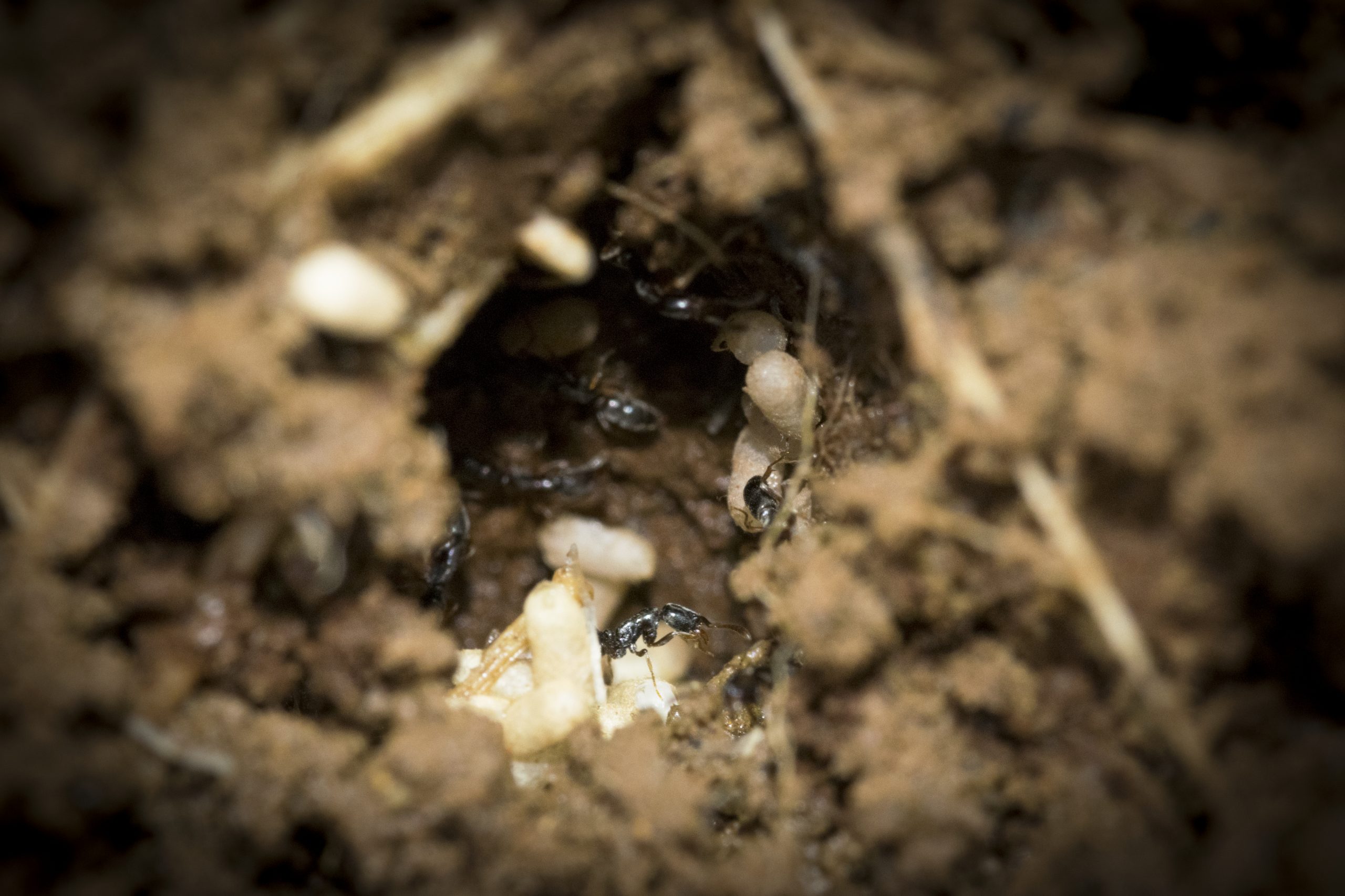 Pictures Images by Marco Mancini Images by Marco Mancini A ghost ant nest. Images by Marco Mancini Ants carrying a larva amongst other things. Images by Marco Mancini Black garden ants gathering food